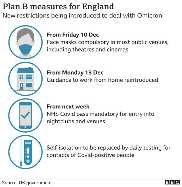 The government has announced new Covid rules for England, in response to concern over the Omicron variant. What are the new Plan B rules for England?